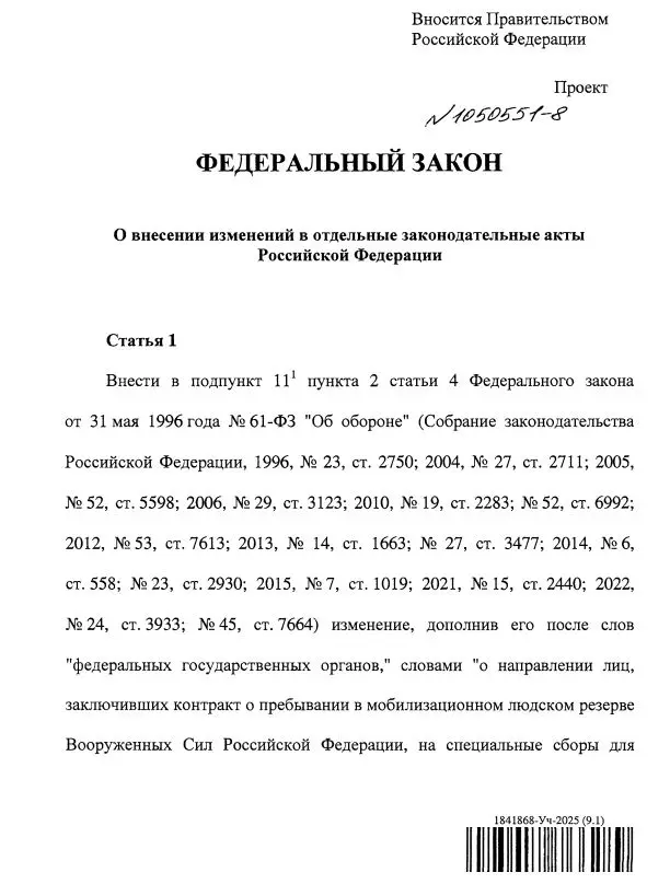 Минобороны РФ разработало законопроект, которым предлагается привлекать резервистов к защите критически важных объектов на территории страны в мирное время.